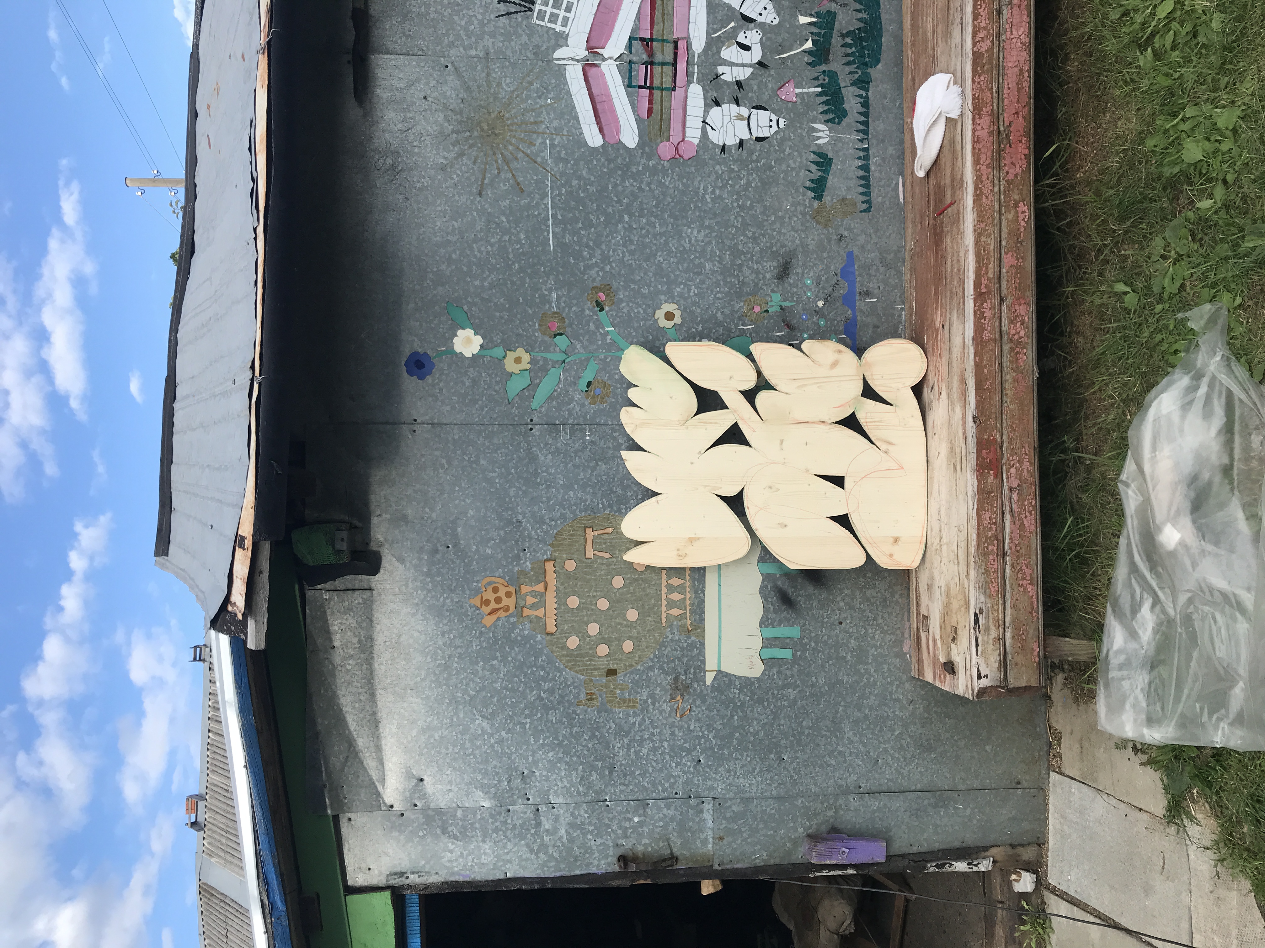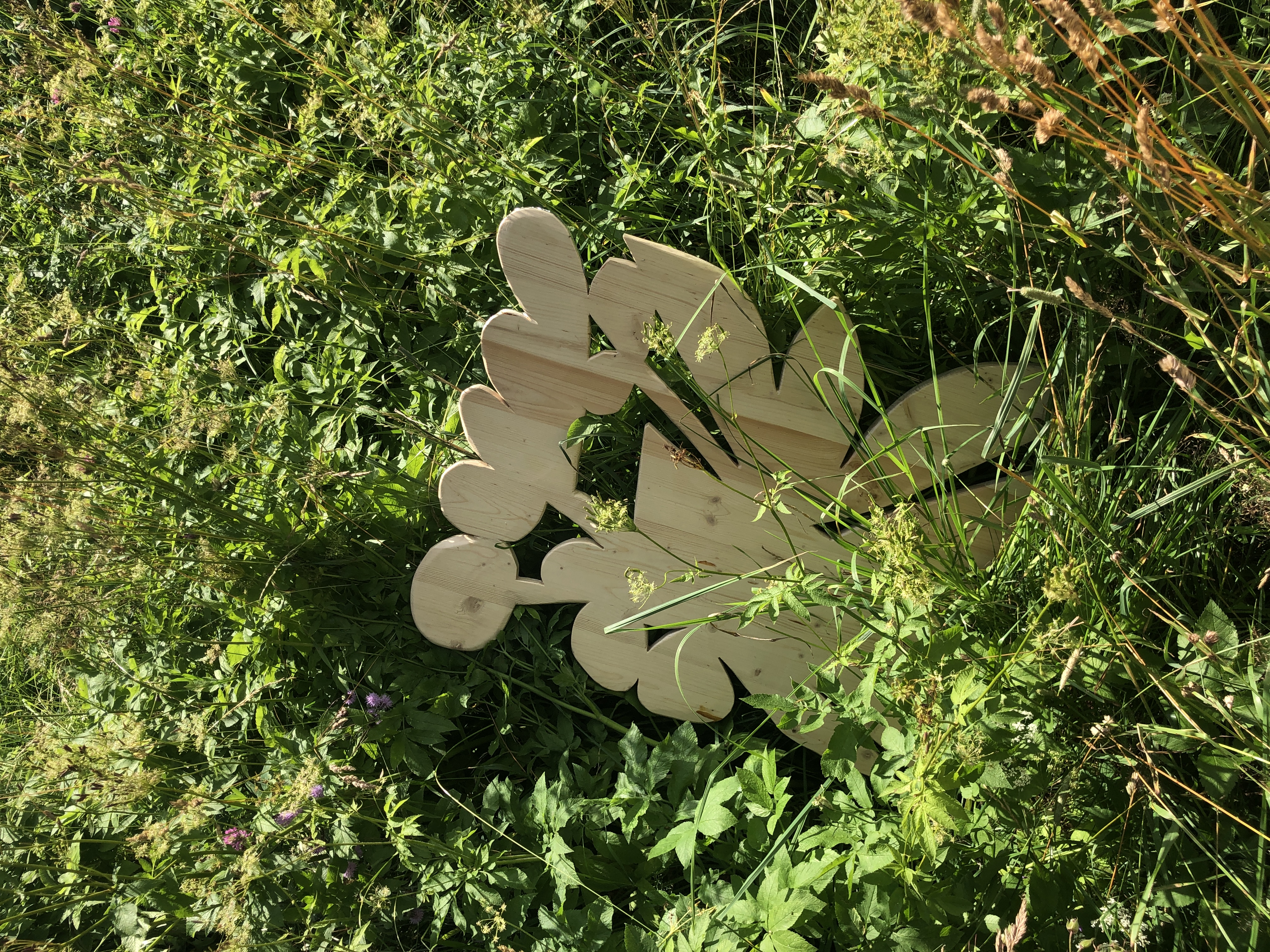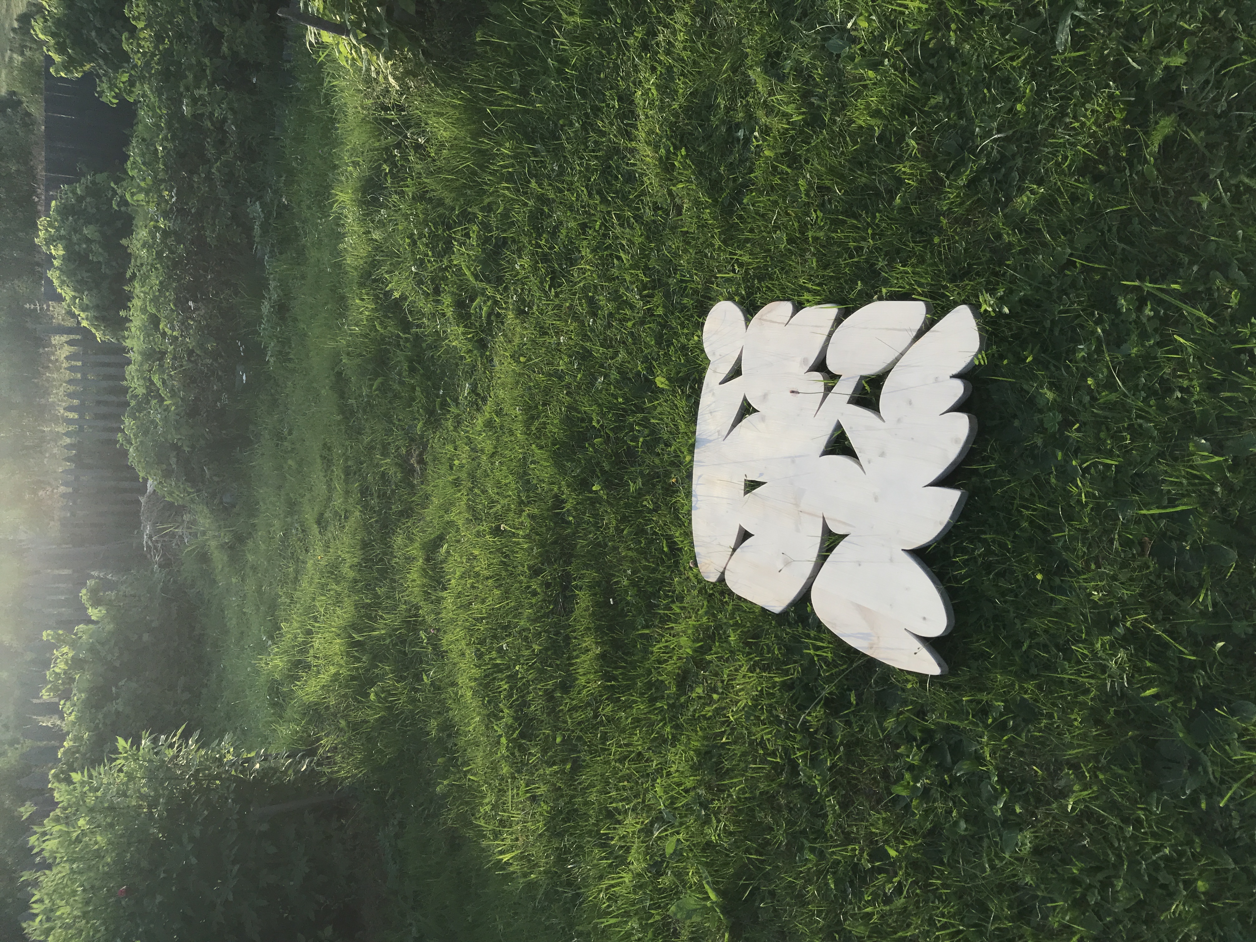 Two abstract wooden forms, a year apart, carved with an electric jigsaw.